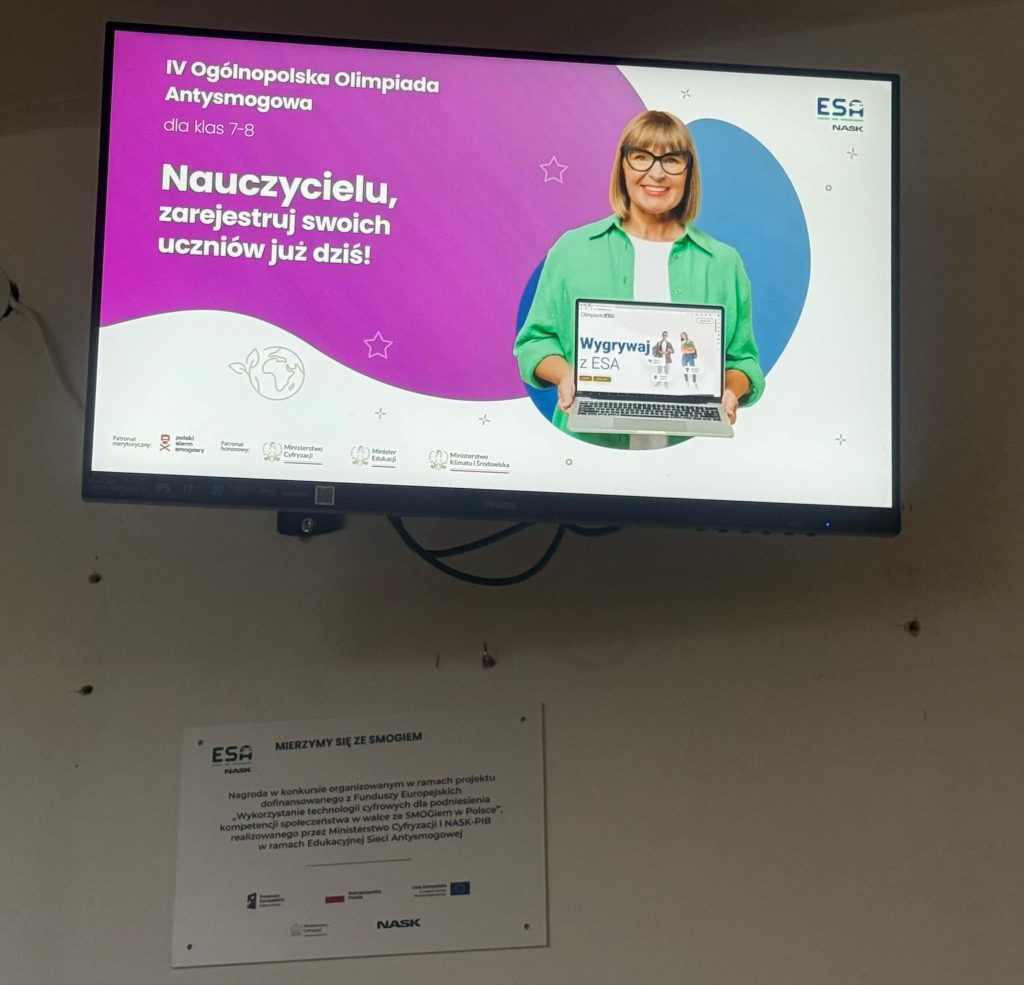 Przypominamy, że nasza szkoła otrzymała dwa monitory edukacyjne w ramach programu Edukacyjna Sieć Antysmogowa! Program ten, realizowany przez Państwowy Instytut Badawczy NASK we współpracy z Polskim Alarmem Smogowym, ma na celu szerzenie wiedzy na temat jakości powietrza oraz zanieczyszczeń, które wpływają na nasze zdrowie. Jesteśmy dumni, że nasza szkoła kontynuuje udział w tym wartościowym programie, który umożliwia uczniom i nauczycielom stały dostęp do wyników pomiarów oraz edukacyjnych treści na temat smogu i jego negatywnego wpływu na środowisko. Dzięki monitorom, które zostały zamontowane, nasza społeczność szkolna będzie mogła na bieżąco śledzić stan jakości powietrza w naszym regionie. Dodatkowo, na szkolnym korytarzu przygotowaliśmy specjalną wystawę poświęconą tematyce smogu. Wystawa ma na celu zwrócenie uwagi na problem zanieczyszczenia powietrza i edukowanie uczniów oraz nauczycieli o tym, jak ważne jest dbanie o czyste powietrze. Zachęcamy wszystkich do zapoznania się z materiałami i do refleksji nad tym, co możemy zrobić, aby poprawić jakość powietrza w naszym otoczeniu.