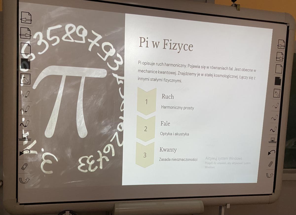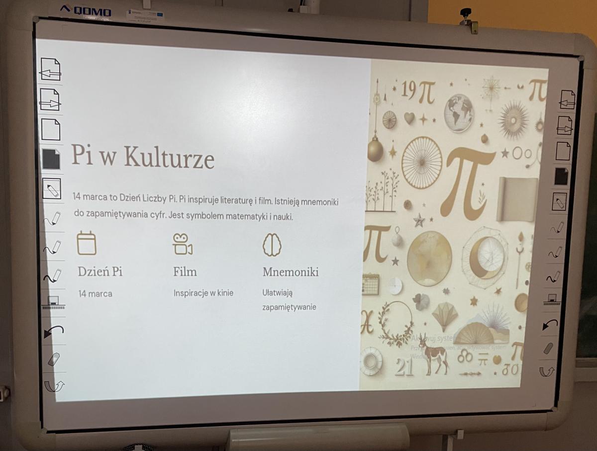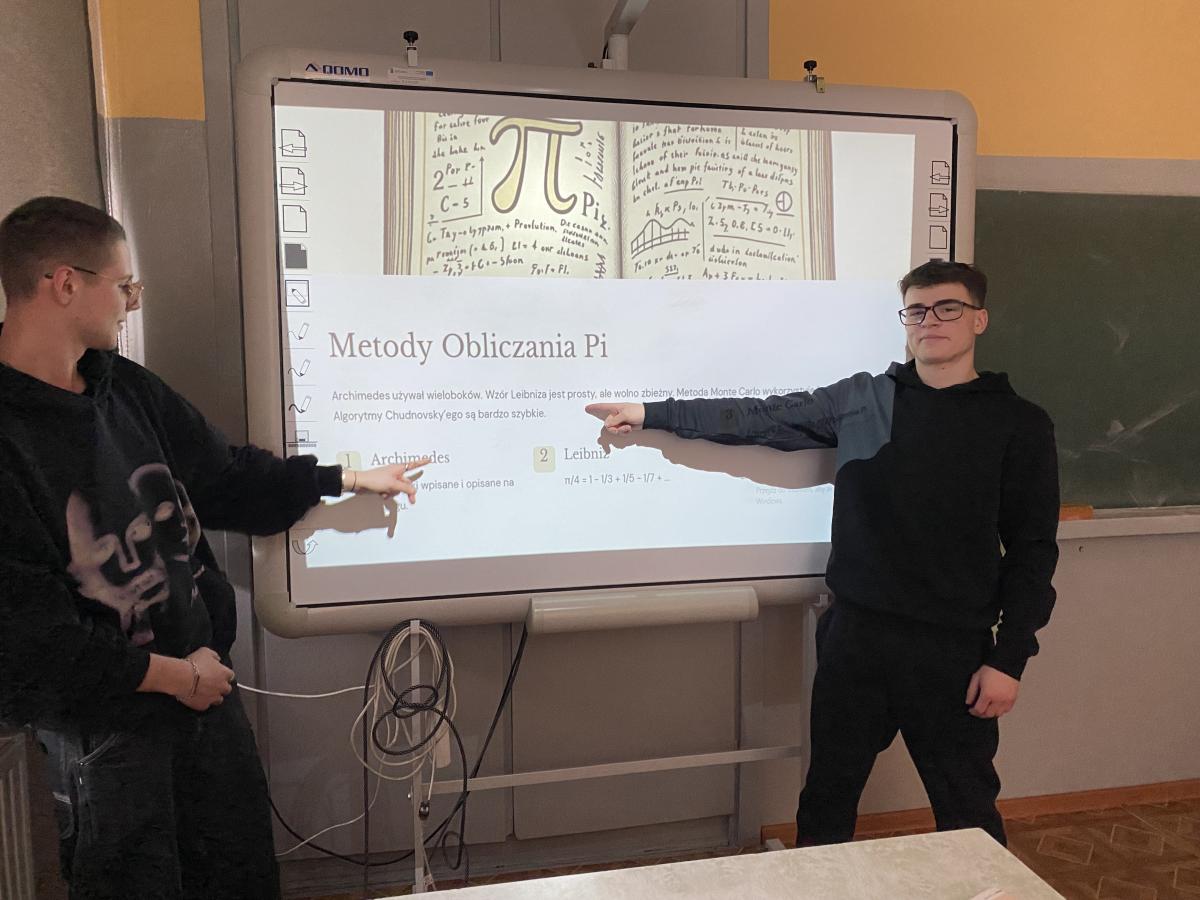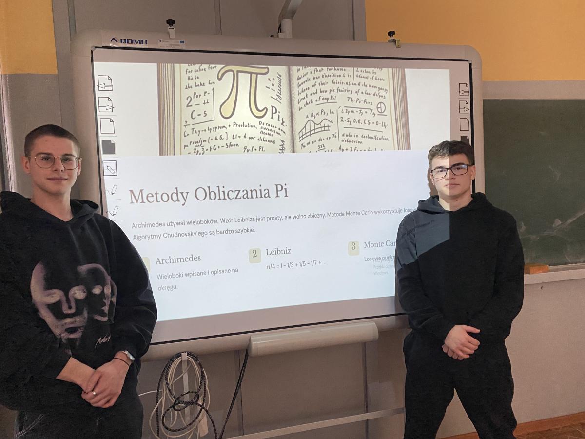 14 marca obchodziliśmy na lekcjach matematyki Dzień Liczby π. Uczniowie klas maturalnych: 4a, 4b, 5t oraz 3t z naszej szkoły przygotowali plakaty, referaty i prezentacje ukazujące szerokie zastosowanie liczby π oraz jej bogatą historię.