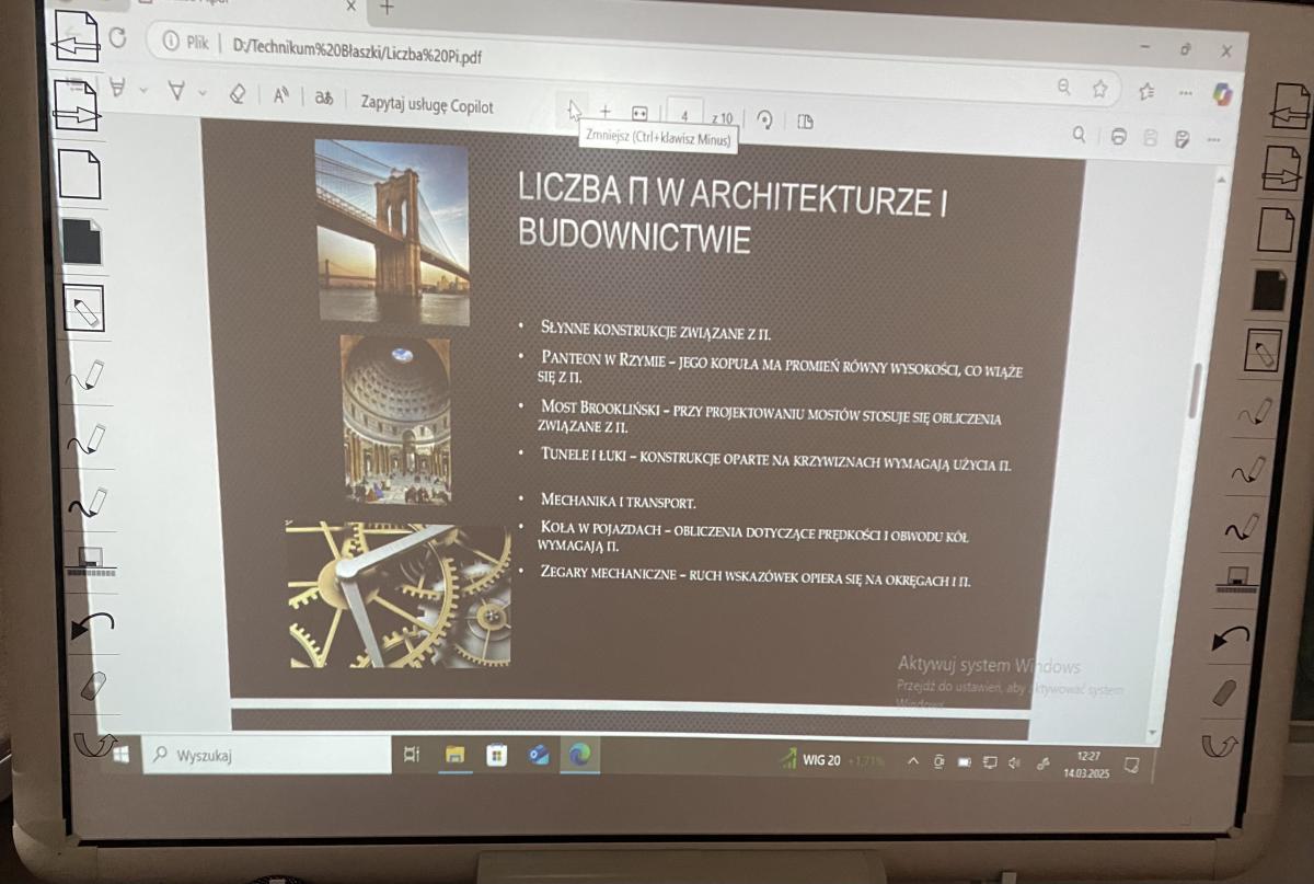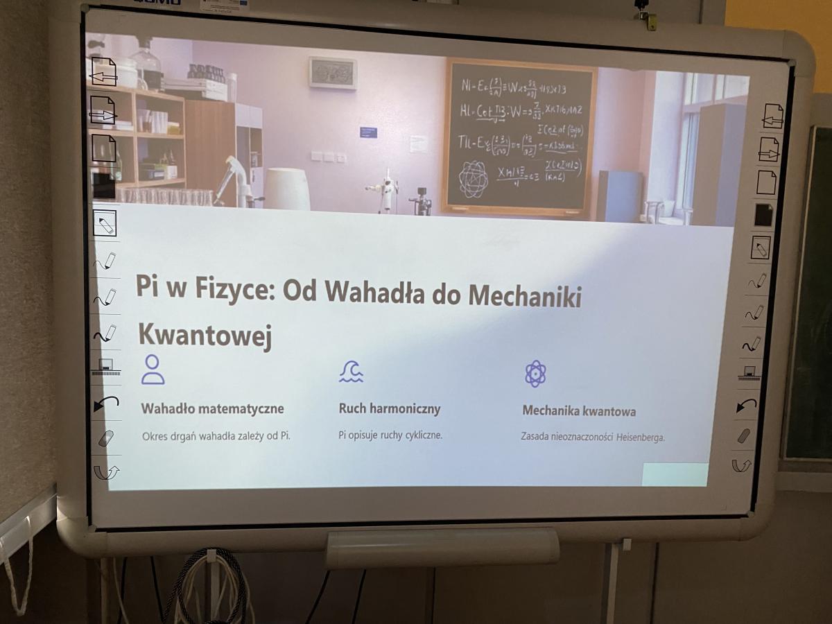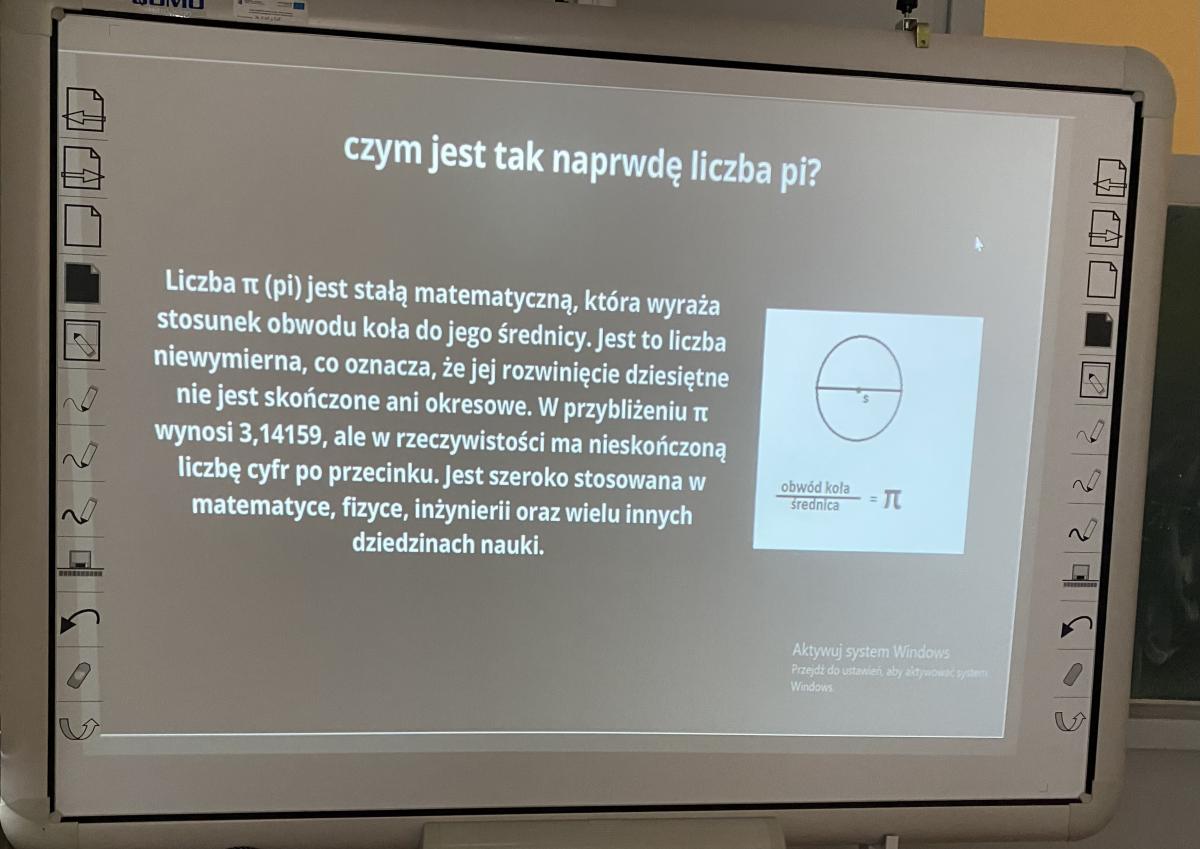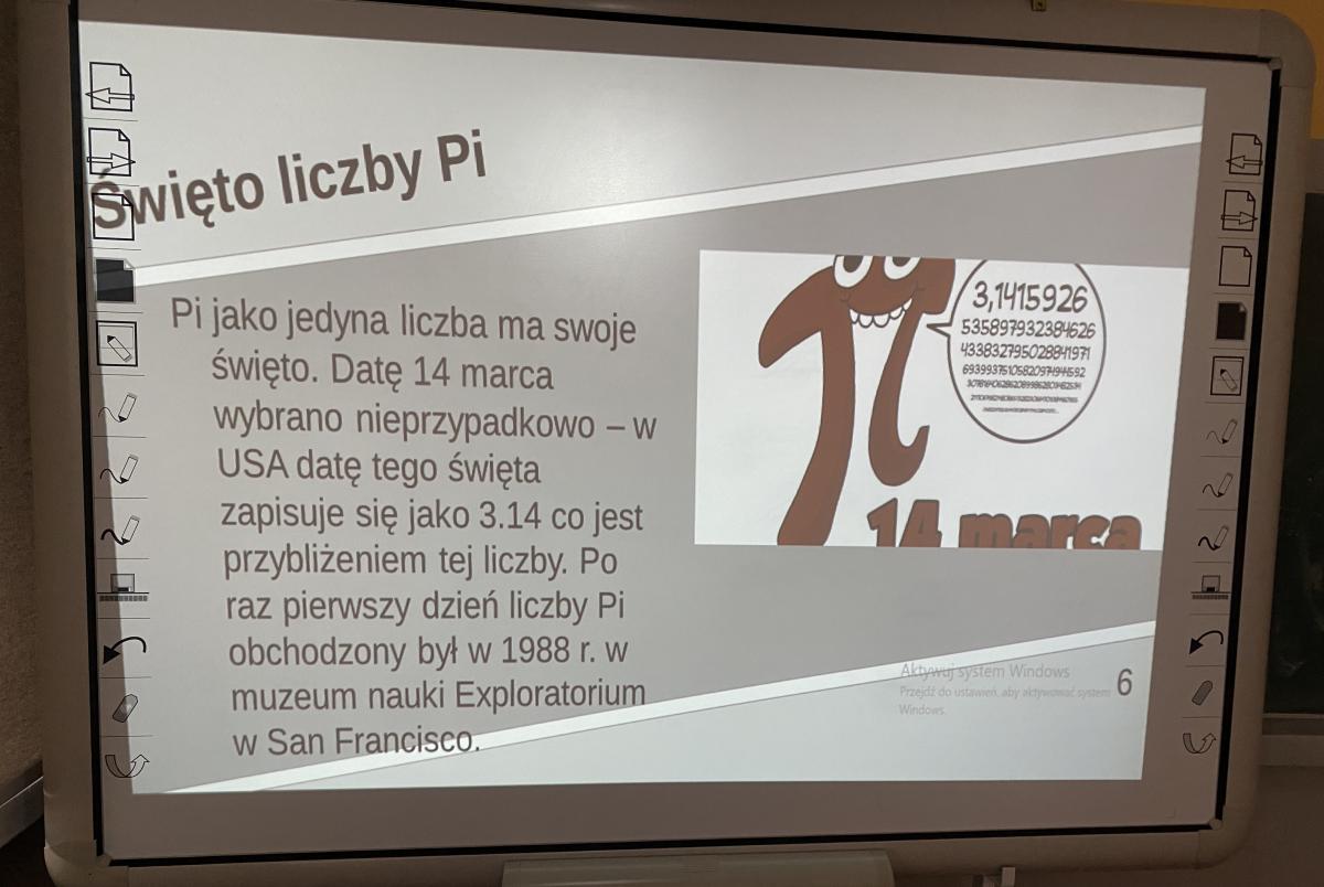 14 marca obchodziliśmy na lekcjach matematyki Dzień Liczby π. Uczniowie klas maturalnych: 4a, 4b, 5t oraz 3t z naszej szkoły przygotowali plakaty, referaty i prezentacje ukazujące szerokie zastosowanie liczby π oraz jej bogatą historię.