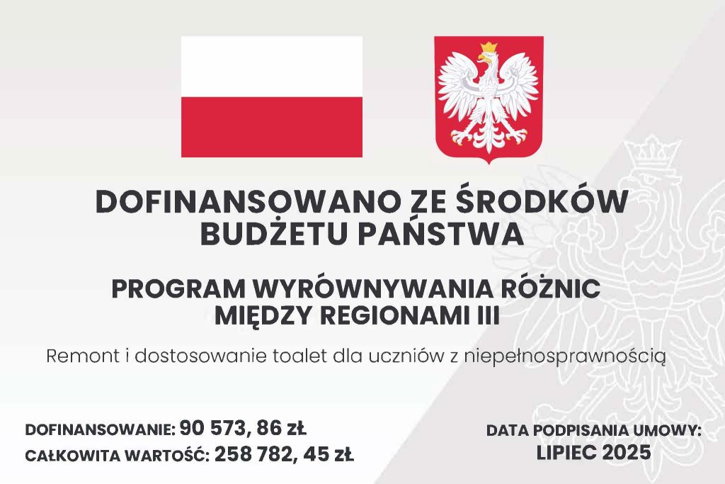 Informacje dotyczące realizowanego projektu „Remont i dostosowanie toalet dla uczniów z niepełnosprawnościami” realizowanego w Powiatowym Zespole Szkół w Błaszkach, dofinansowanego ze środków PFRON, w ramach „Programu wyrównywania różnic między regionami III” w obszarze B: