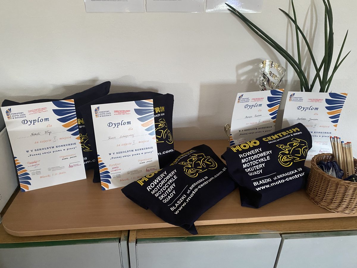 To już V edycja konkursu wiedzy o prawie pracy i bhp „Poznaj swoje prawa w pracy”. 17 uczniów technikum ekonomicznego i rachunkowości Powiatowego Zespołu Szkół w Błaszkach przystąpiło 4 listopada 2025r. do etapu szkolnego konkursu. Nikola Kłys z kl. 3t i Kamila Ludziejewska z kl. 3t uzyskały największą liczbę punktów i to one 5 marca 2026r. będą reprezentować naszą szkołę w etapie regionalnym konkursu w Łodzi. Życzymy powodzenia!!!!