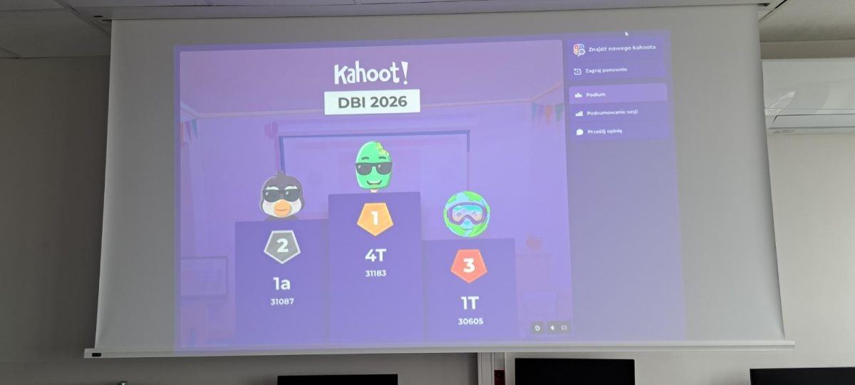 Dnia 17 marca 2026 roku w sali komputerowej odbył się I międzyklasowy konkurs z okazji Dnia Bezpiecznego Internetu. Konkurs został przeprowadzony w formie quizu Kahoot, a jego celem było promowanie wiedzy na temat bezpiecznego korzystania z sieci oraz rozwijanie świadomości cyfrowej wśród uczniów.