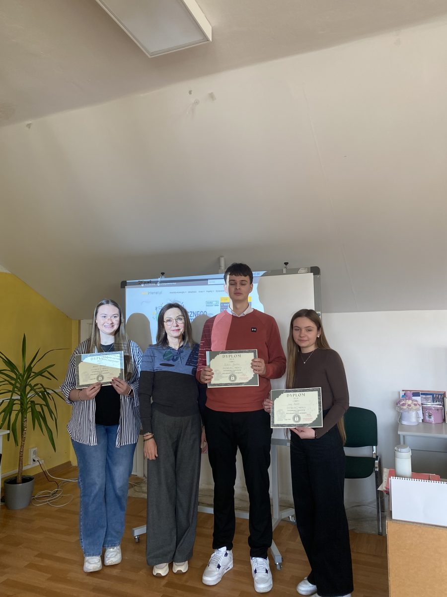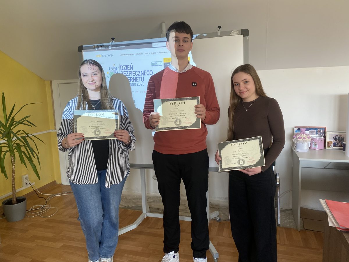 W związku z obchodami Dnia Bezpiecznego Internetu p. Wioletta Antczak zorganizowała konkurs na plakat graficzny, którego celem było promowanie bezpiecznego i odpowiedzialnego korzystania z zasobów internetowych oraz rozwijanie kreatywności uczniów.