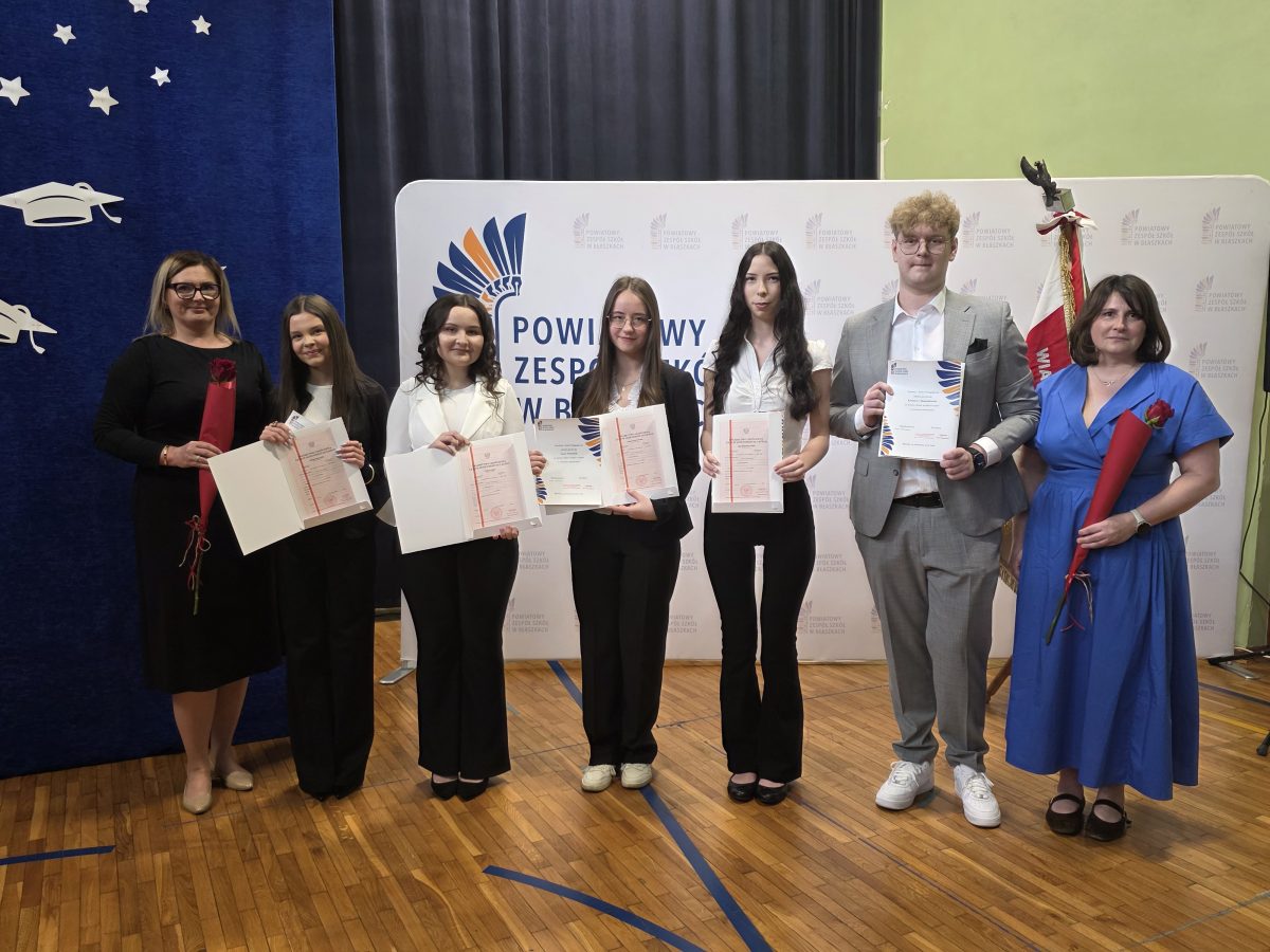 Klasa 4a Liceum Ogólnokształcącego im. Wojska Polskiego w Błaszkach zakończyła dzisiaj rok szkolny. W uroczystości wzięli udział: Naczelnik Wydziału Oświaty, Kultury i Sportu pan Józef Jura, Przewodnicząca Rady Rodziców przy PZS w Błaszkach pani Bogumiła Giejko, rodzice maturzystów oraz cała społeczność szkolna z głównymi bohaterami dzisiejszego dnia – 29 absolwentami liceum. Dyrektor szkoły pani Magdalena Zakęs, wychowawca klasy pani Iwona Michalska, Przewodnicząca Rady Rodziców, pani Bogumiła Giejko wręczyły uczniom z najwyższą średnią świadectwa z wyróżnieniem, listy pochwalne, nagrody ich rodzicom listy gratulacyjne. Nagrodę dla absolwenta z najlepszymi wynikami w nauce otrzymała Kinga Dolatowska, wręczył ją Naczelnik Wydziału Oświaty, Kultury i Sportu, pan Józef Jura.